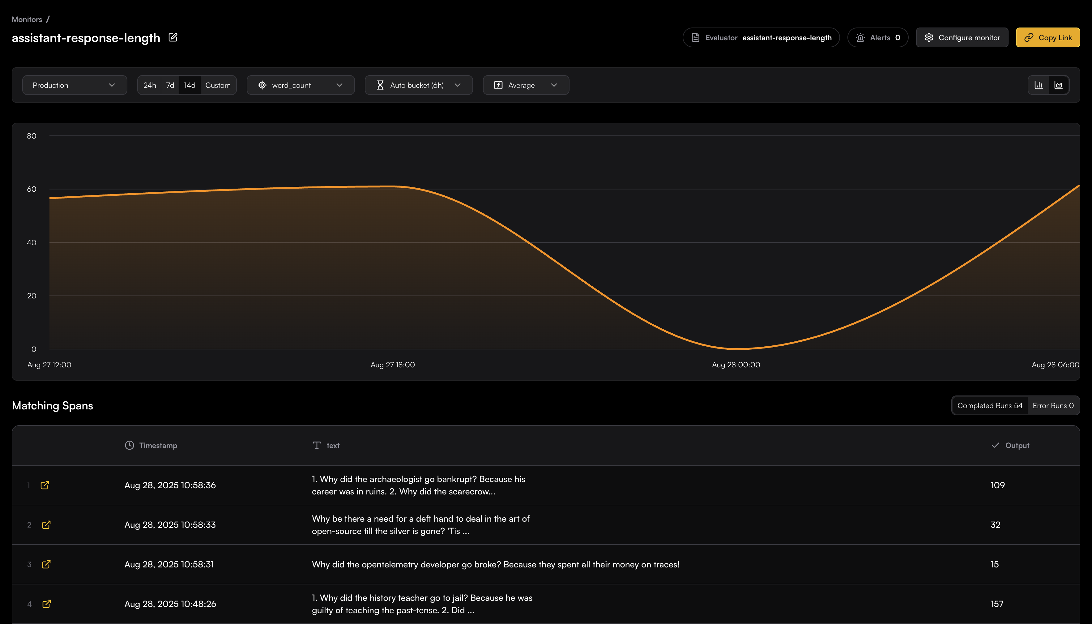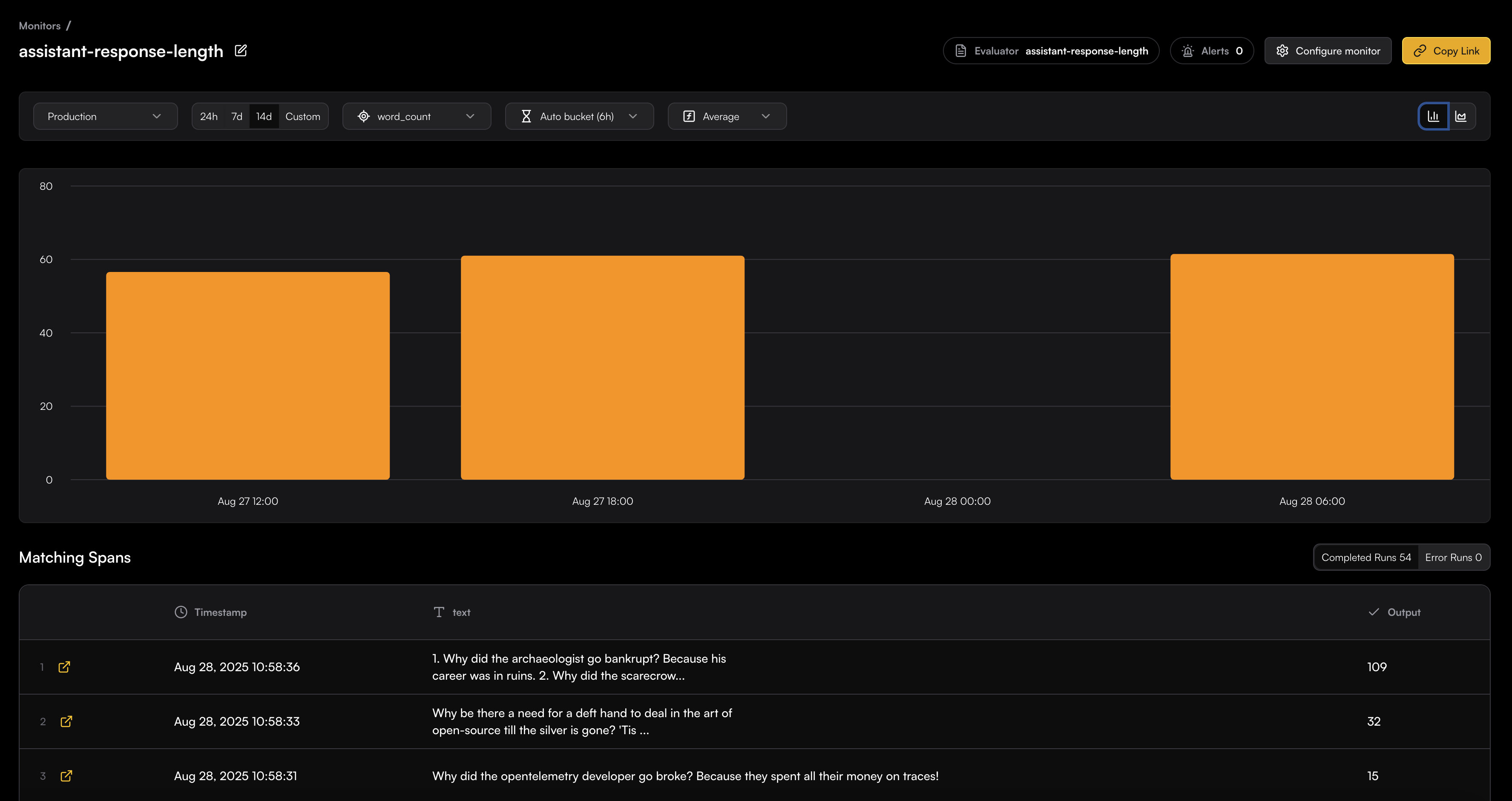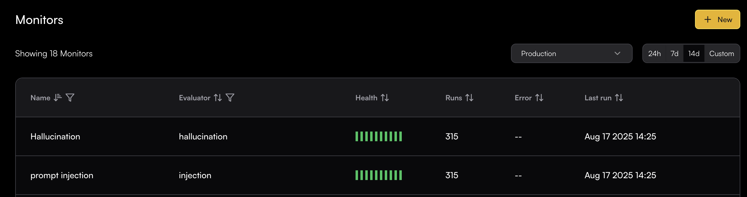 Ready to set up an evaluator for your monitor? Learn more about creating and configuring evaluators in the Evaluators section.